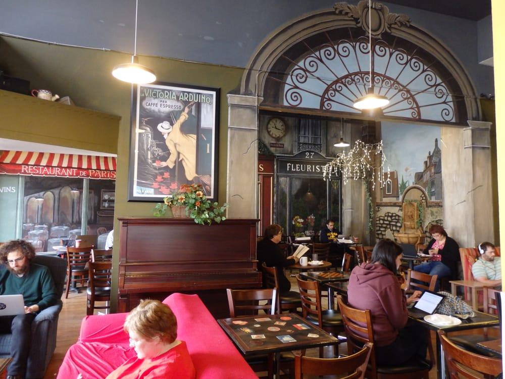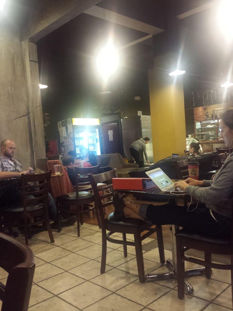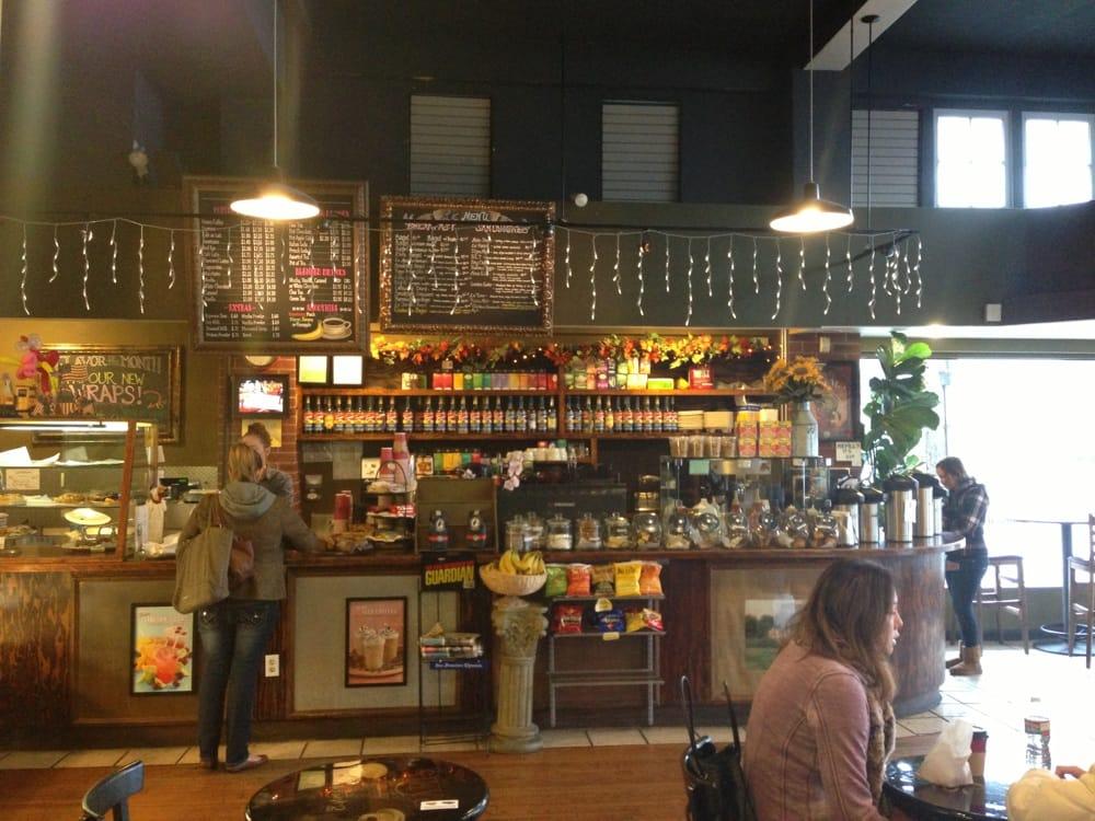 Its not Starbucks but that's why its awesome. Owned and mostly operated by a middle age couple. They are hardworking and kind but there are some off days. I guess I like this place because it's the anti-corporate, and pro-american-dream type cafe. There are all the options you'd find at any 'high-end' cafe and more; blended drinks, soy options, sandwiches, teas, baked-goods and even cup-o-ramen. Its the kind of 'Friend's' neighborhood cafe I'm glad is in my neighborhood. Good wifi and plenty of tables and seats to work or study. Its clean and cozy, with cool murals and real trees to keep it enchanted.
